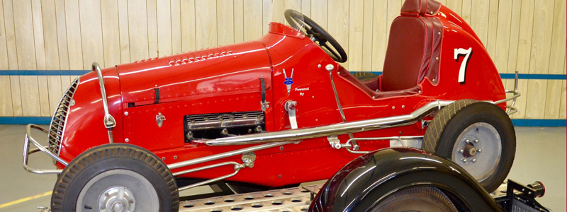 This racer was rebuilt by Russel Bonnena and souped-up with a Ford V8 60 Series engine with Edelbrock cylinder heads...